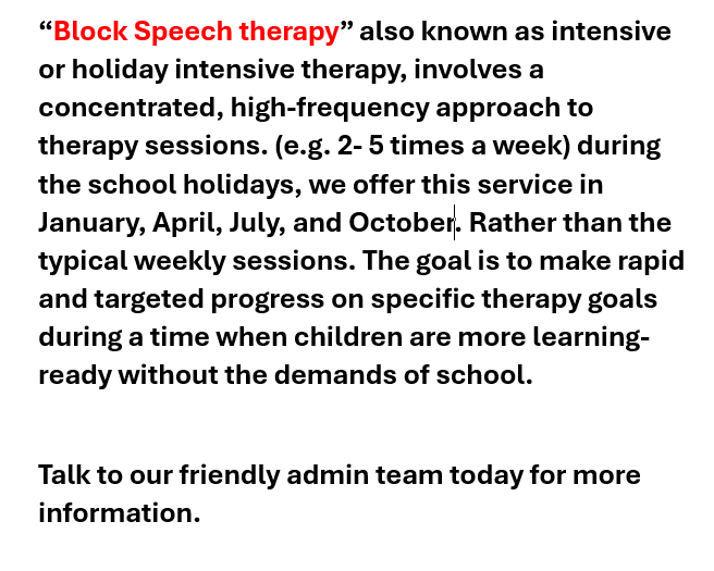 If you, your child or someone you care for would like to be seen by a speech pathologist or physiotherapist, the first step is to phone us or complete our referral form.